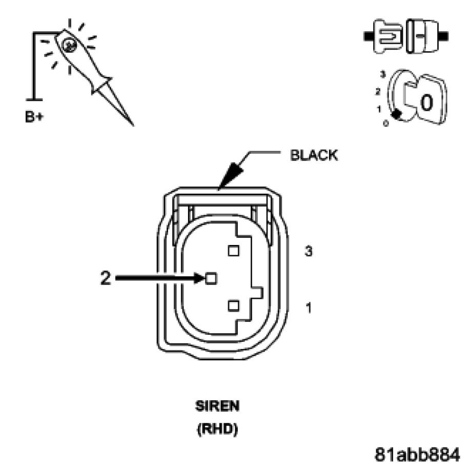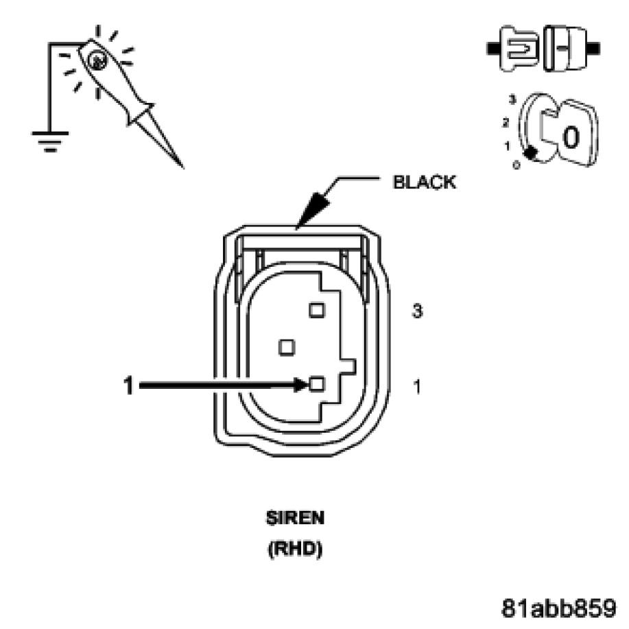 Using a 12-volt test light connected to 12-volts, check the (Z905) Ground circuit at the siren connector.