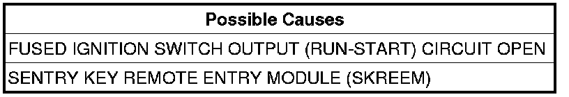 NOTE: Check the related fuses to the Fused Ignition Switch Output (Run-Start) circuit. If the fuse is found to be open, repair the circuit for a shorted condition.