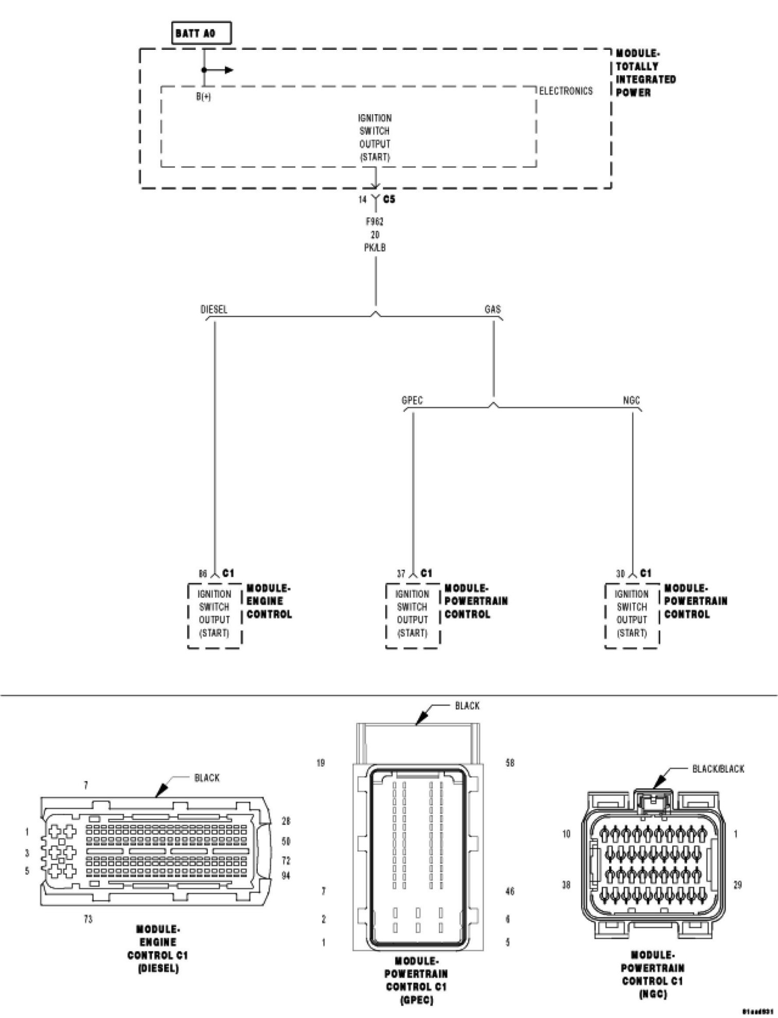5. (DIESEL) CHECK (F962) IGNITION SWITCH OUTPUT (START) CIRCUIT FOR A SHORT TO GROUND