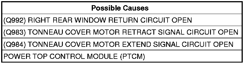 - Repair the (Q983) Tonneau Cover Motor Retract Signal circuit for an open.