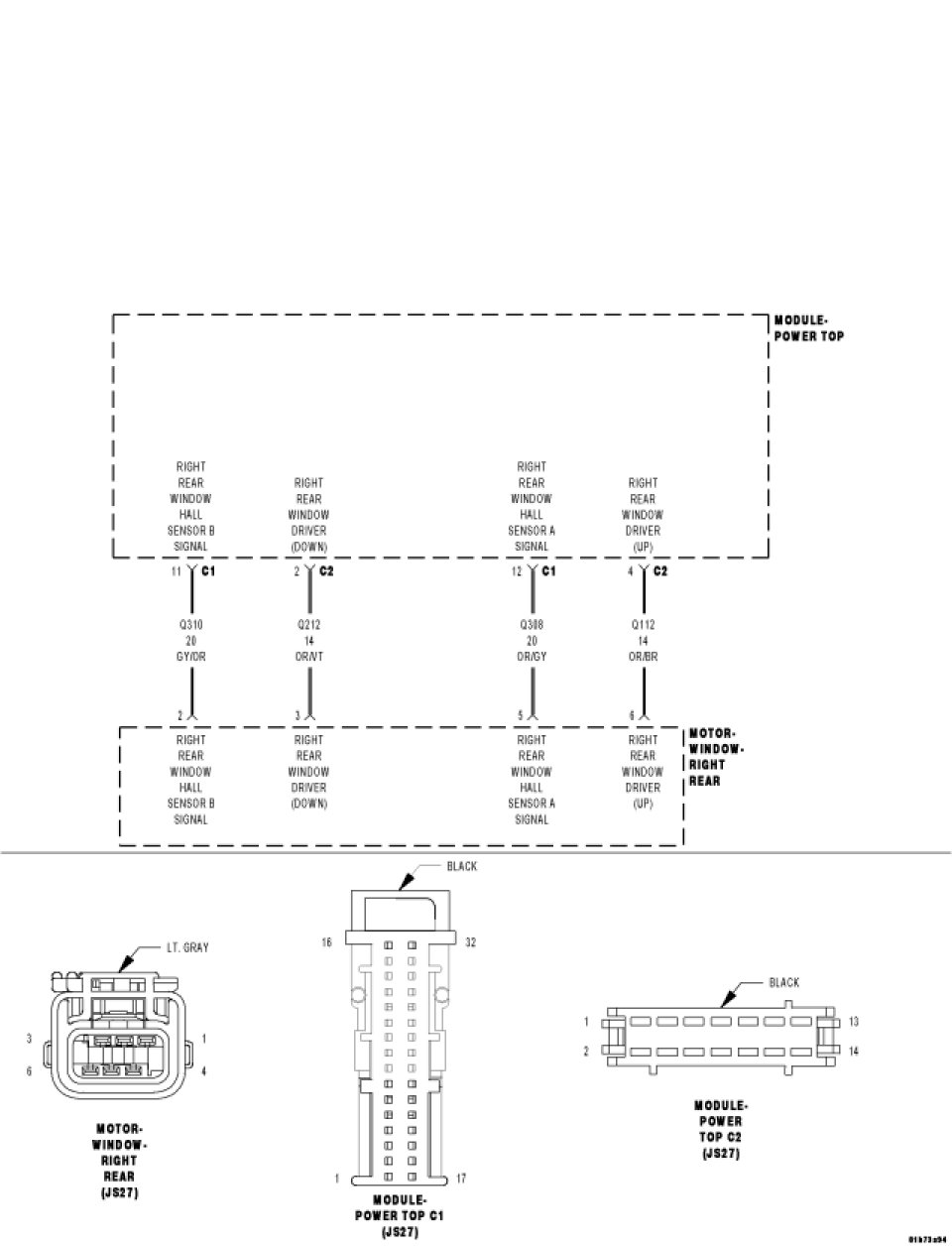 - Correct the crossed wiring between the (Q310) Right Rear Window Hall Sensor B Signal circuit and the (Q308) Right Rear Window Hall Sensor A Signal circuit.