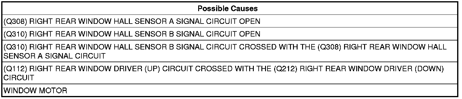 - Repair the (Q308) Right Rear Window Hall Sensor A Signal circuit for an open.