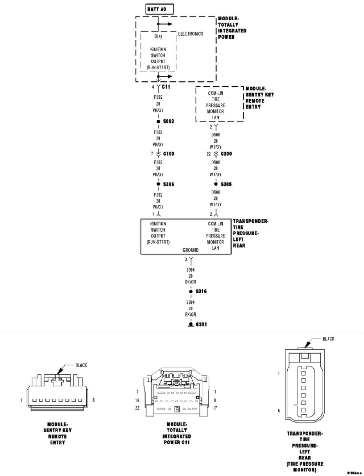 C150C-LEFT REAR TIRE PRESSURE TRIGGER MODULE VOLTAGE HIGH