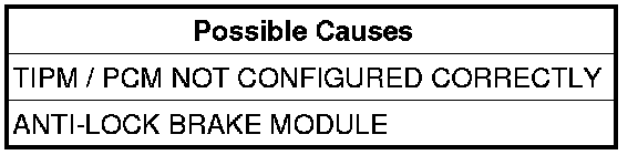 Check the following data to verify the TIPM/PCM is configured correctly. Engine Displacement (PCM), XWD 4x2, 4x4, all Wheel Drive, (TIPM), Axle ratio (TIPM), Vehicle Line (TIPM), Brake type 0= ABS 1=ESP (TIPM).