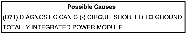 - Repair the (D71) Diagnostic CAN C (-) circuit for a short to ground.