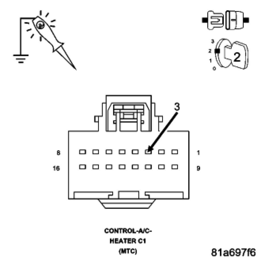Disconnect the A/C Heater Control C1 harness connector.