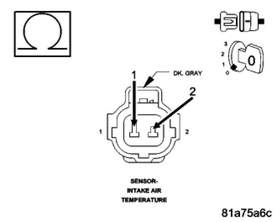 Measure the resistance of the (K21) IAT Signal circuit between the Intake Air Temperature Sensor harness connector and the Powertrain Control Module (PCM) harness connector.