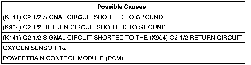 - Repair the short between the (K904) O2 1/2 Return circuit and the (K141) O2 1/2 Signal circuit.