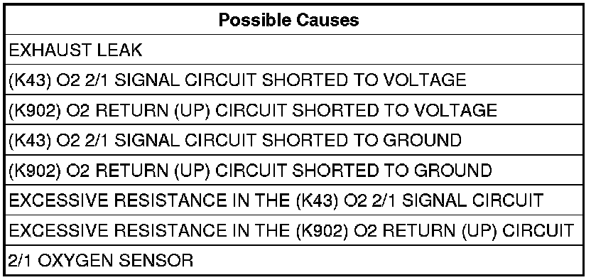 - Repair the short to voltage in the (K43) O2 2/1 Signal circuit.