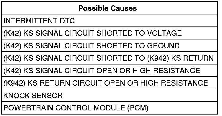 - Repair the (K42) KS Signal circuit for a short to the (K942) KS Return circuit.