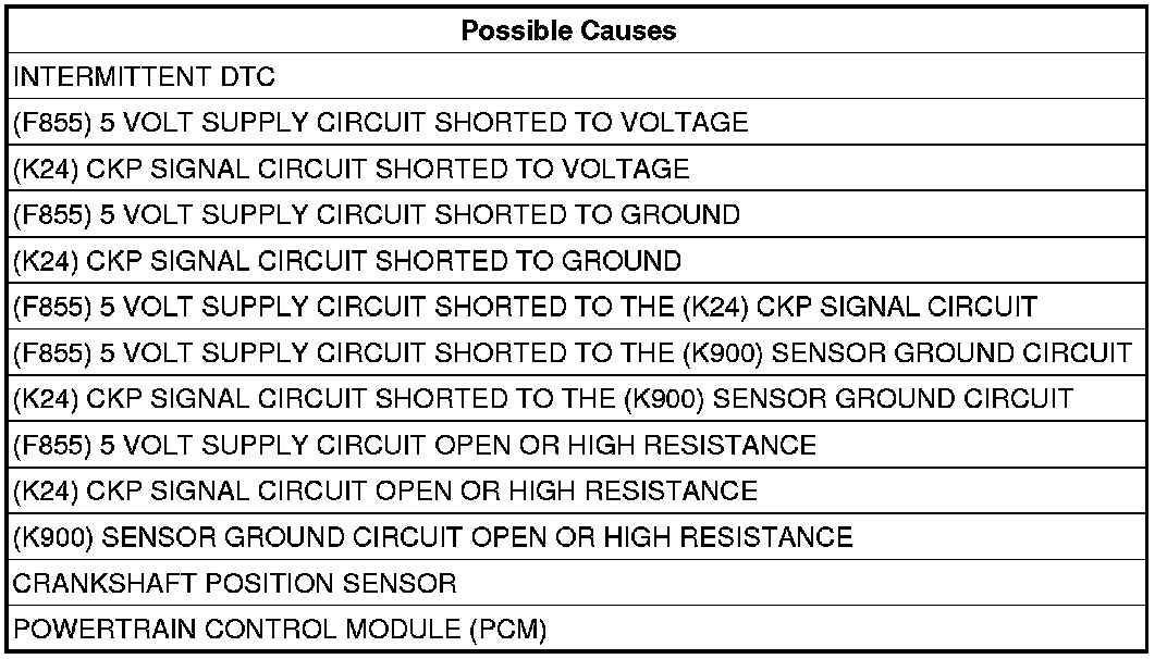 - Repair the (F855) 5 Volt Supply circuit for a short to the (K24) CKP Signal circuit.