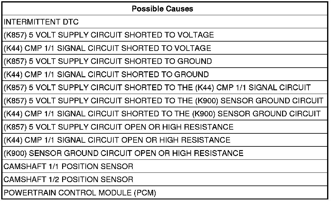 - Repair the (K44) CMP 1/1 Signal circuit for a short to the (K900) Sensor Ground circuit.