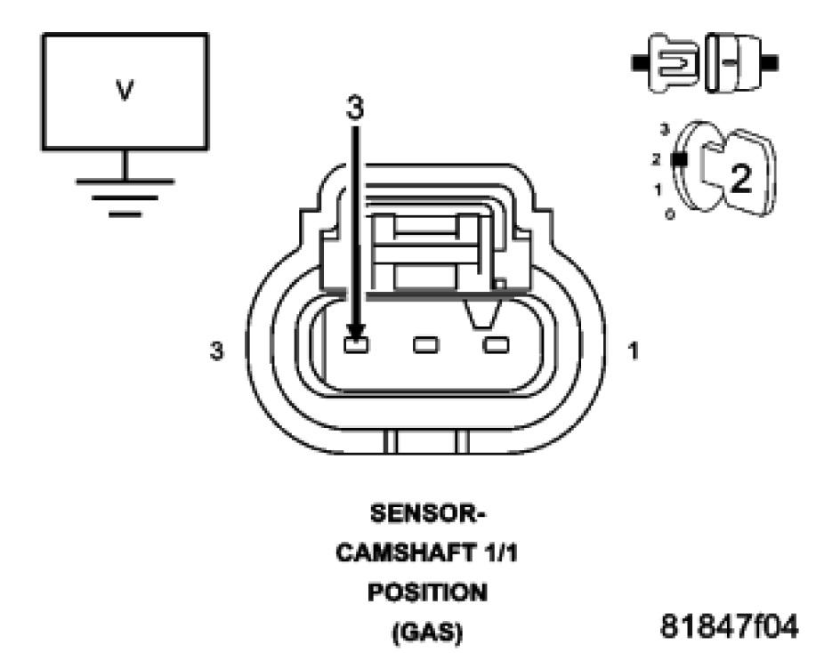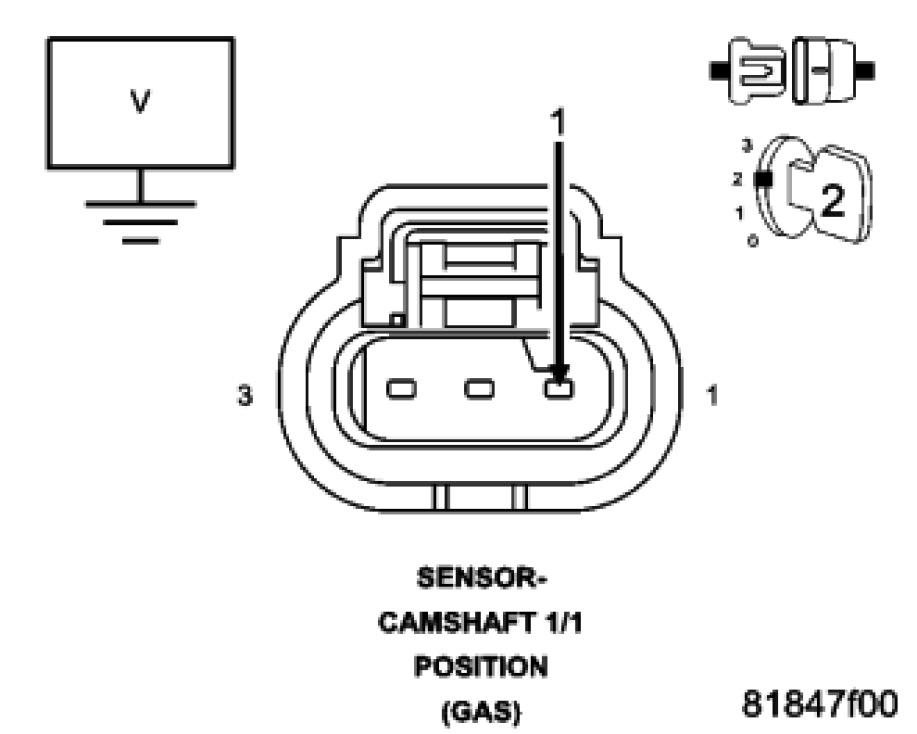 Measure the voltage of the (K857) 5 Volt Supply circuit in the Camshaft 1/1 Position Sensor harness connector.