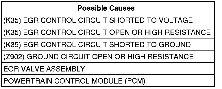 - Repair the short to voltage in the (K35) EGR Control circuit.
