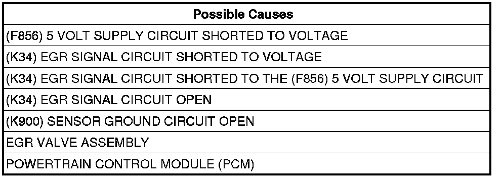- Repair the short between the (K34) EGR Signal circuit and the (F856) 5 Volt Supply circuit.