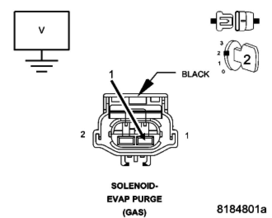 Using a 12 volt test light connected to 12 volts, check the (K70) Evap Purge Return circuit in the Evap Purge Solenoid harness connector.