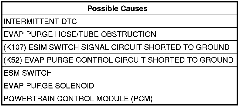 - Repair the (K52) Evap Purge Control circuit for a short to ground.