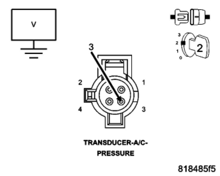 Measure the voltage of the (C818) A/C Pressure Sensor Supply circuit in the A/C Pressure Transducer harness connector.