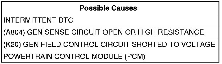 - Repair the (A804) Gen Sense circuit for an open circuit or high resistance.