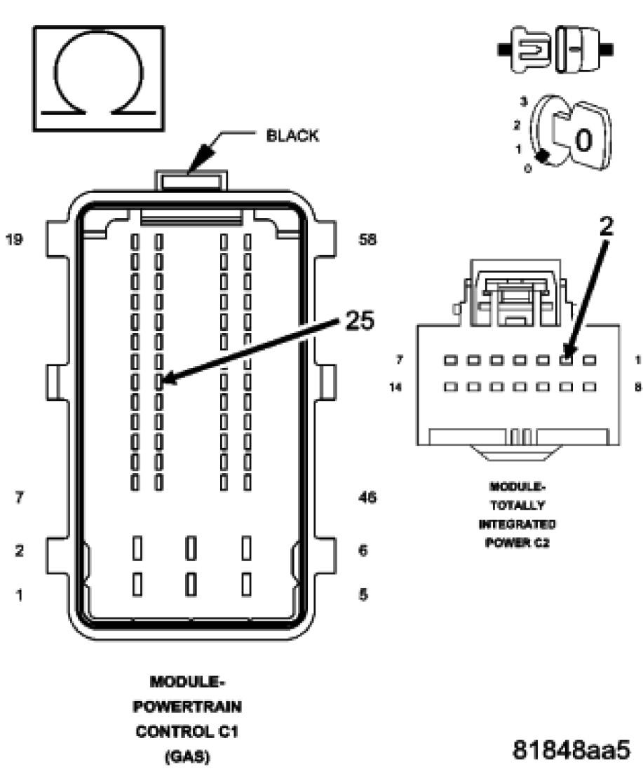 Using the wiring diagram/schematic as a guide, inspect the wiring and connectors between the Totally Integrated Power Module (TIPM) and the Powertrain Control Module (PCM).