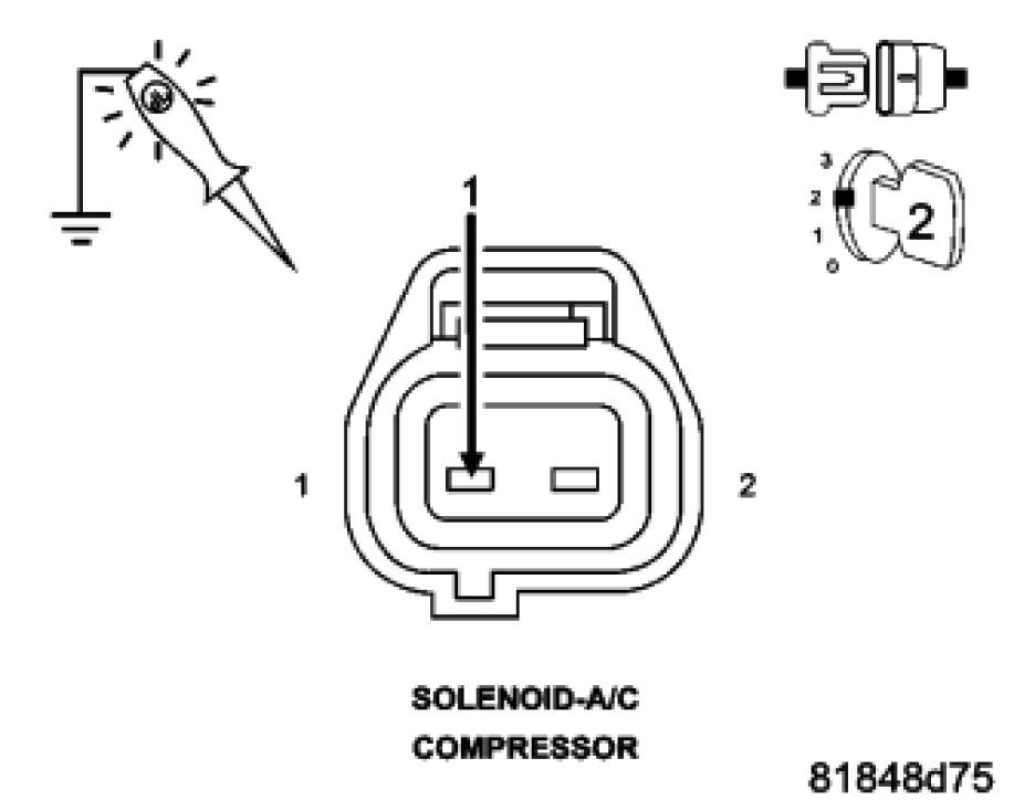 Using a 12 volt test light connected to 12 volts, check the (Z902) Ground circuit in the A/C Compressor harness connector.