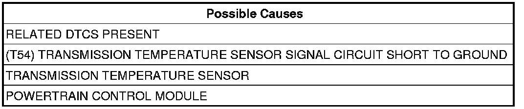 - Repair the (T54) Transmission Temperature Sensor Signal circuit for a short to ground.