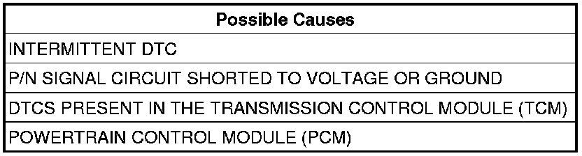 This code will set if the PCM detects an irrational Park/Neutral switch state. Two trip fault. Three good trips to turn off the MIL.