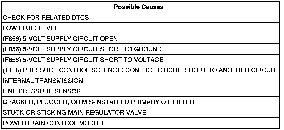 The PCM continuously monitors Actual Line Pressure and compares it to Desired Line Pressure. If the Actual Line Pressure is more than 69 kPa (10 psi) below Desired Line Pressure, this DTC will set.
