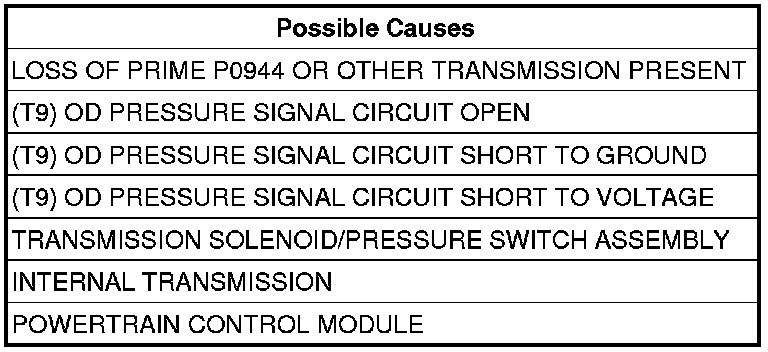 - Repair the (T9) OD Pressure Signal circuit for a short to voltage.
