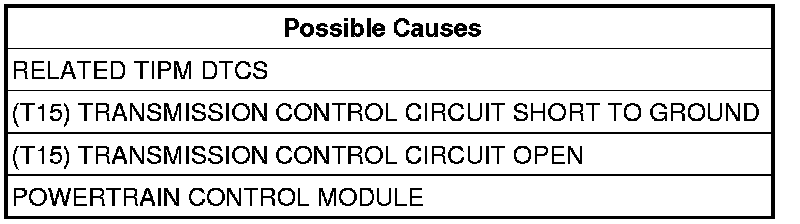 - Repair the (T15) Transmission Control circuit for a short to ground.