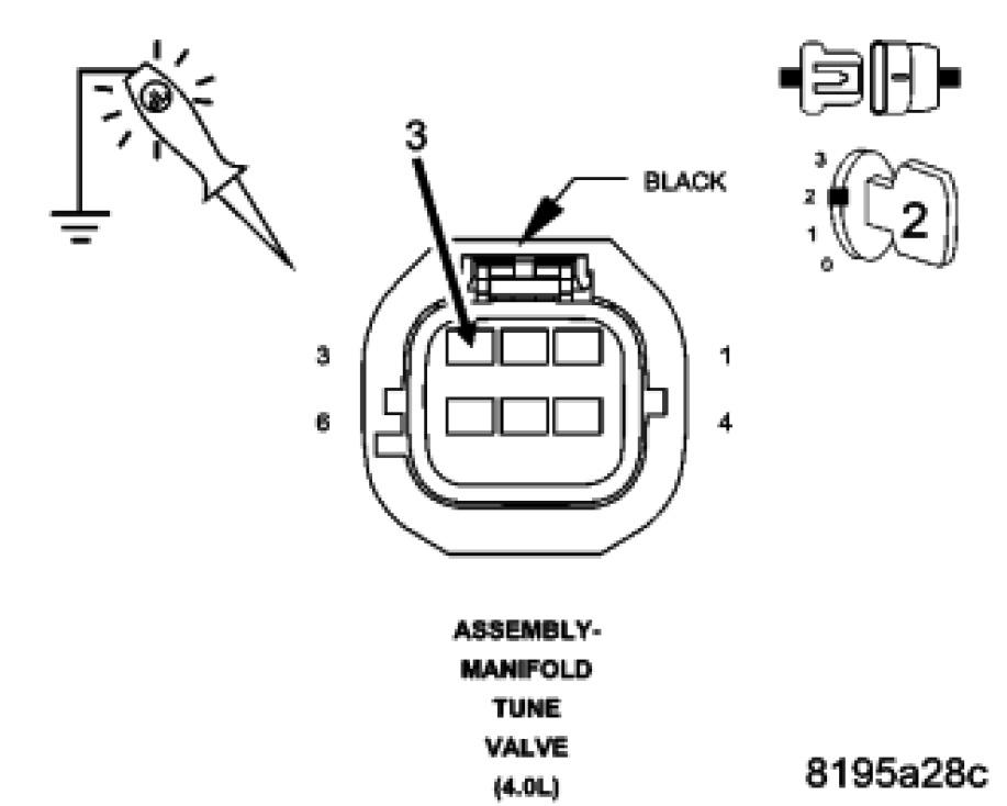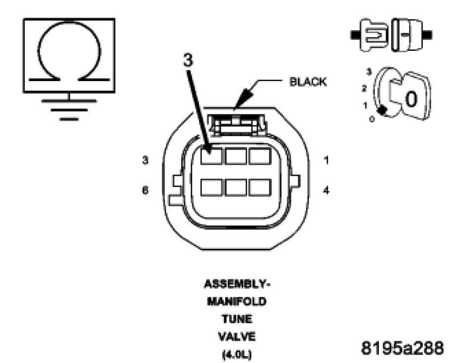 Using a 12 volt test light connected to 12 volts, check the (Z906) Ground circuit in the Manifold Tune Valve Assembly harness connector.