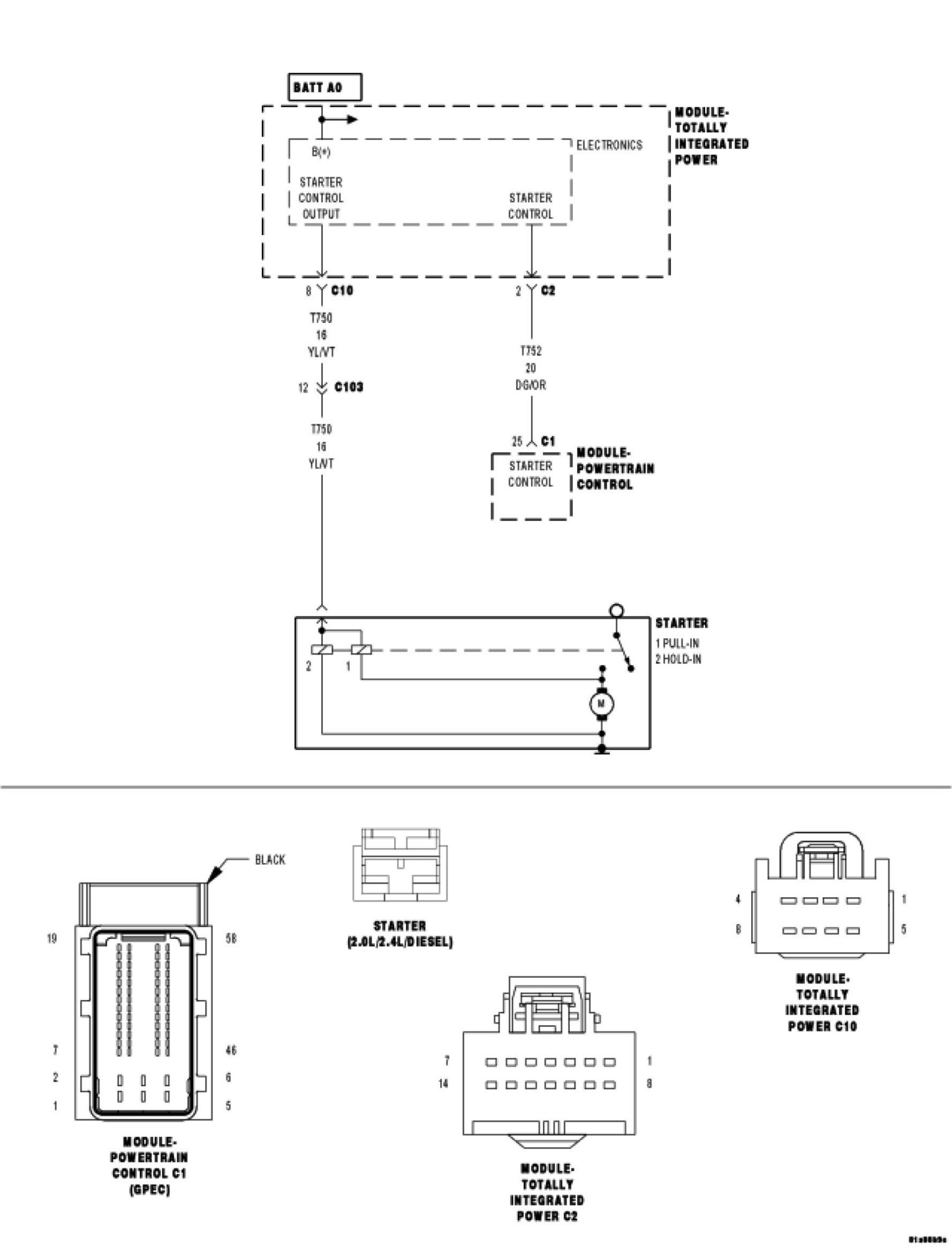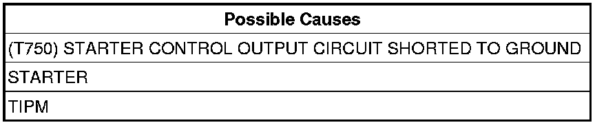 - Repair the short to ground in the (T750) Starter Control Output circuit.