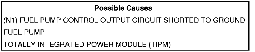 3. (N1) FUEL PUMP CONTROL OUTPUT CIRCUIT SHORTED TO GROUND
