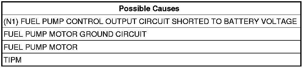- Repair the short to battery voltage in the (N1) Fuel Pump Control Output circuit.