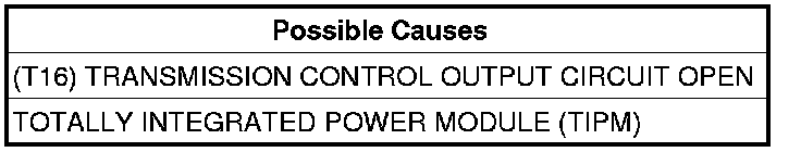 - Repair the (T16) Transmission Control Output circuit for an open.