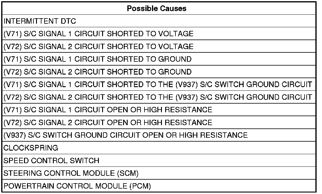 - Repair the (V71) S/C Signal 1 circuit for a short to the Steering Control Module (SCM) circuit.