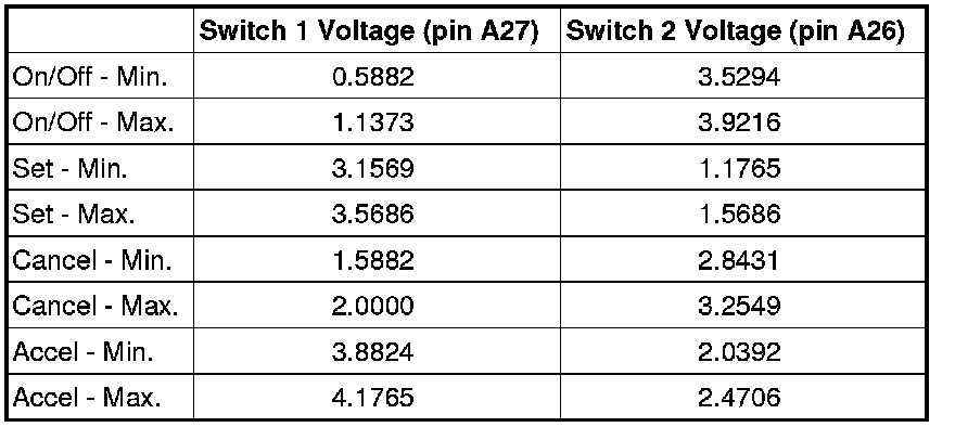 NOTE: Refer to the following table when diagnosing speed control switch voltage DTCs.