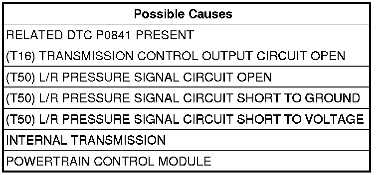 - Repair the (T50) L/R Pressure Signal circuit for a short to voltage.