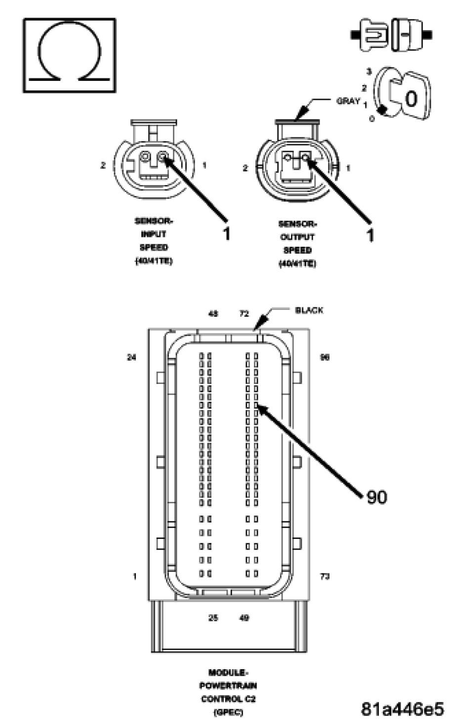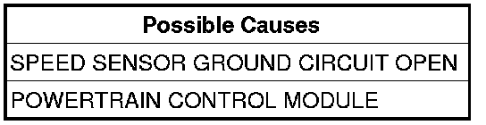 The input and output speed sensors use a common ground circuit. The loss of this common ground results in the input signal being sensed for both. After a reset in neutral, and after observing a specific ratio, the Speed Check Fault Counter will increment. Because the speed sensors and the thermistor (temperature sensor) share the same ground circuit, this DTC may indicate a loss of the common speed sensor ground. In some cases this fault will cause a Gear Ratio Error DTC to be set.