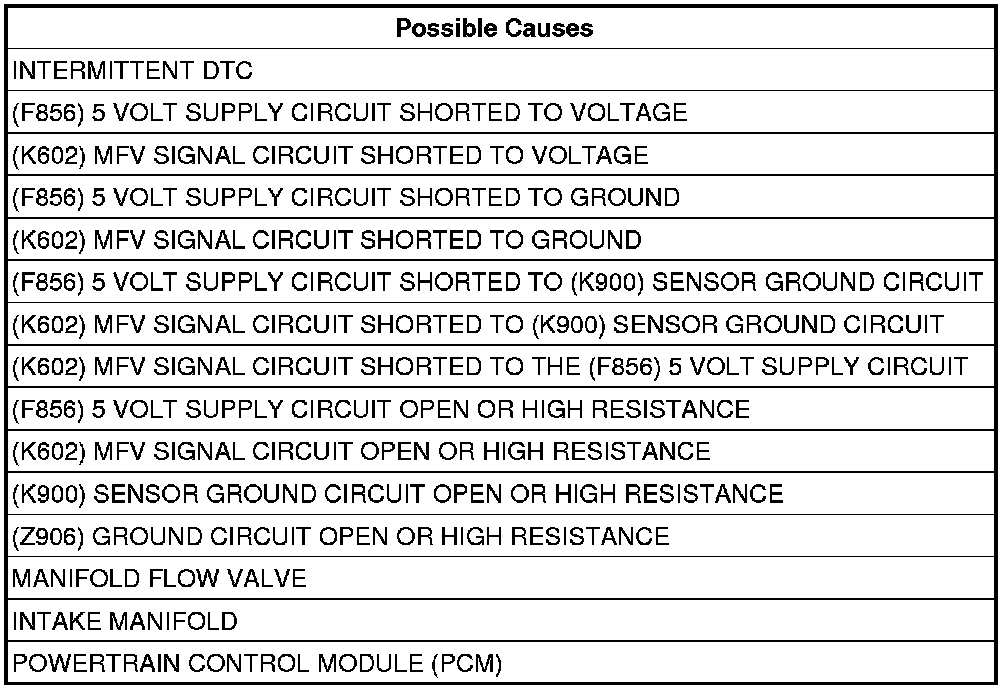 - Repair the (K602) MFV Signal circuit for a short to the (F856) 5 Volt Supply circuit.