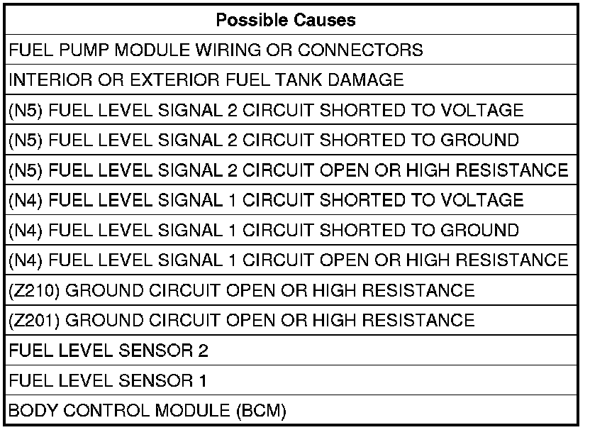 - Repair the short to ground in the (N5) Fuel Level Signal 2 circuit.