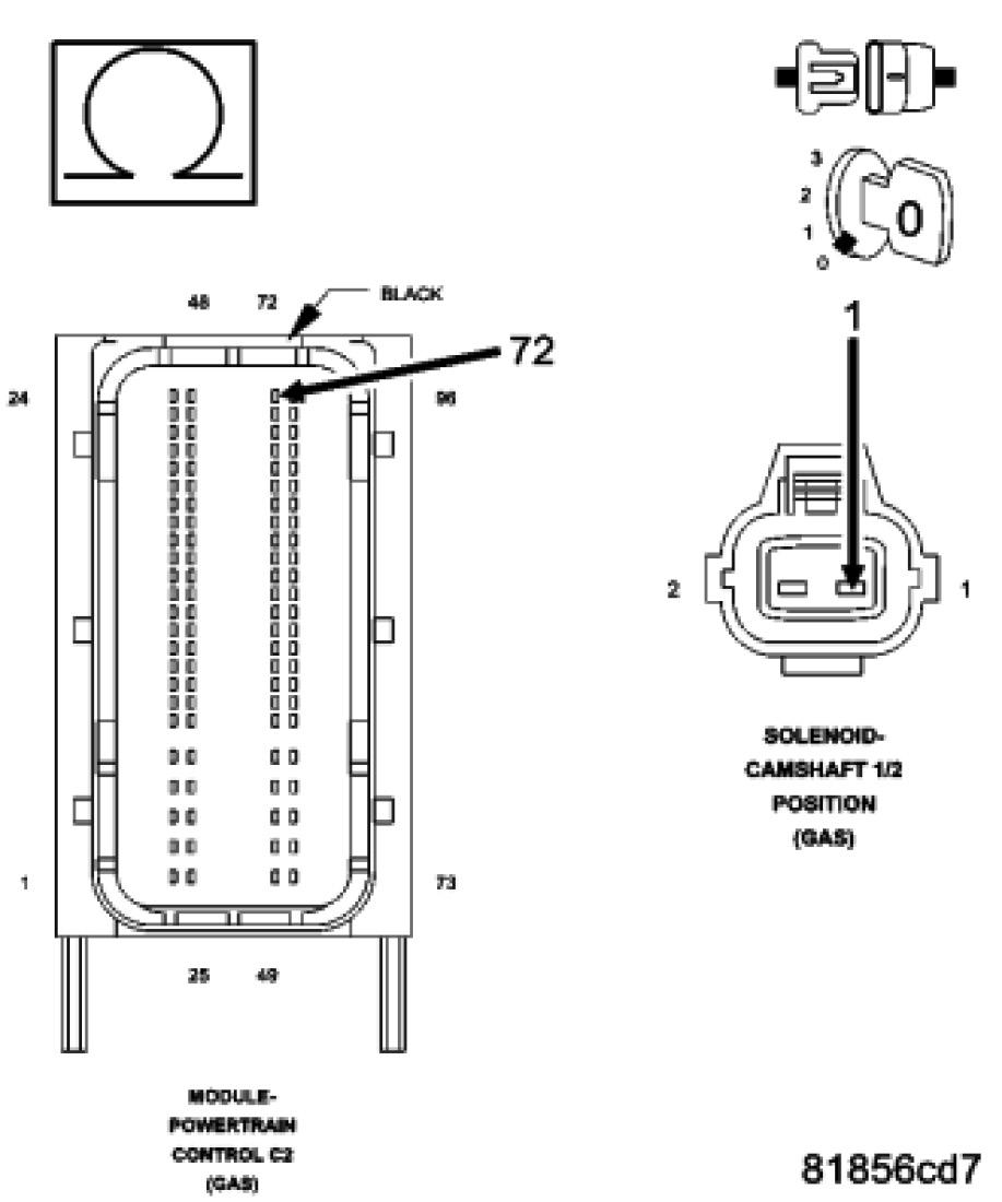 Inspect the wiring and connectors between the Camshaft 1/2 Position Solenoid and the Powertrain Control Module (PCM).