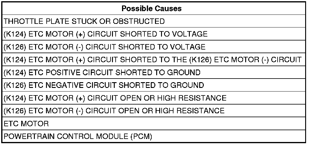 5. (K124) ETC MOTOR (+) CIRCUIT SHORTED TO THE (K126) ETC MOTOR (-) CIRCUIT