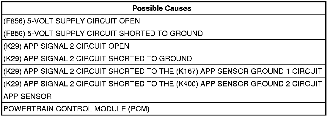5. (K29) APP SIGNAL 2 CIRCUIT SHORTED TO THE (K400) APP SENSOR GROUND 2 CIRCUIT