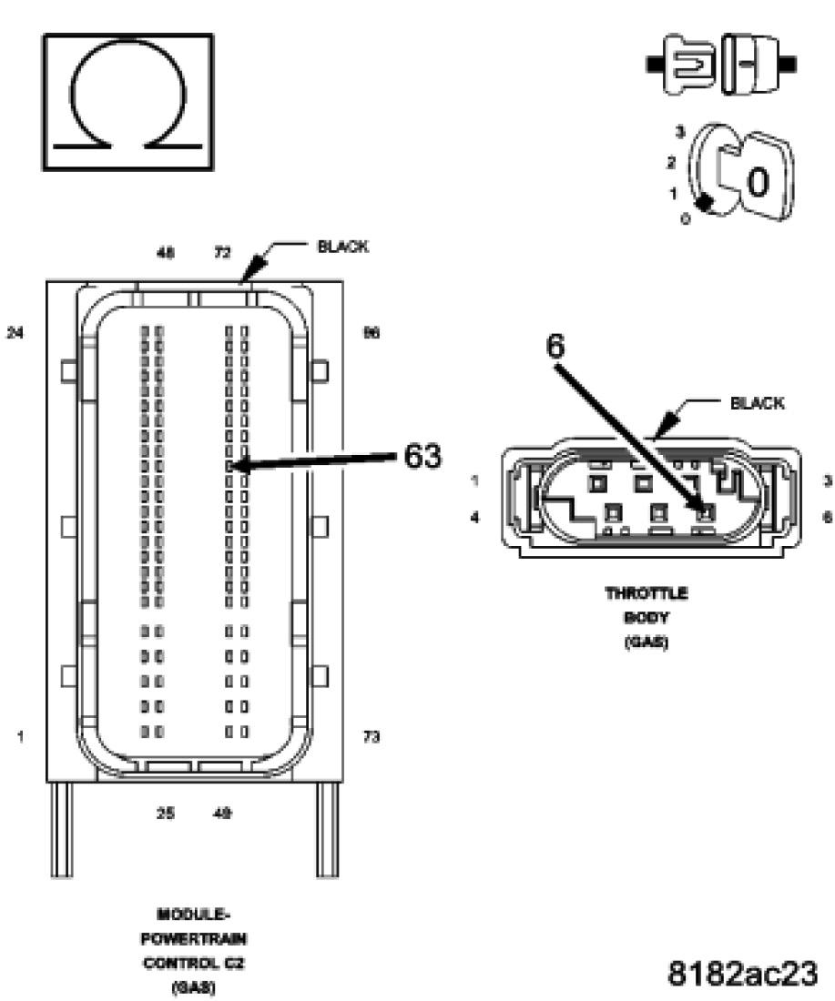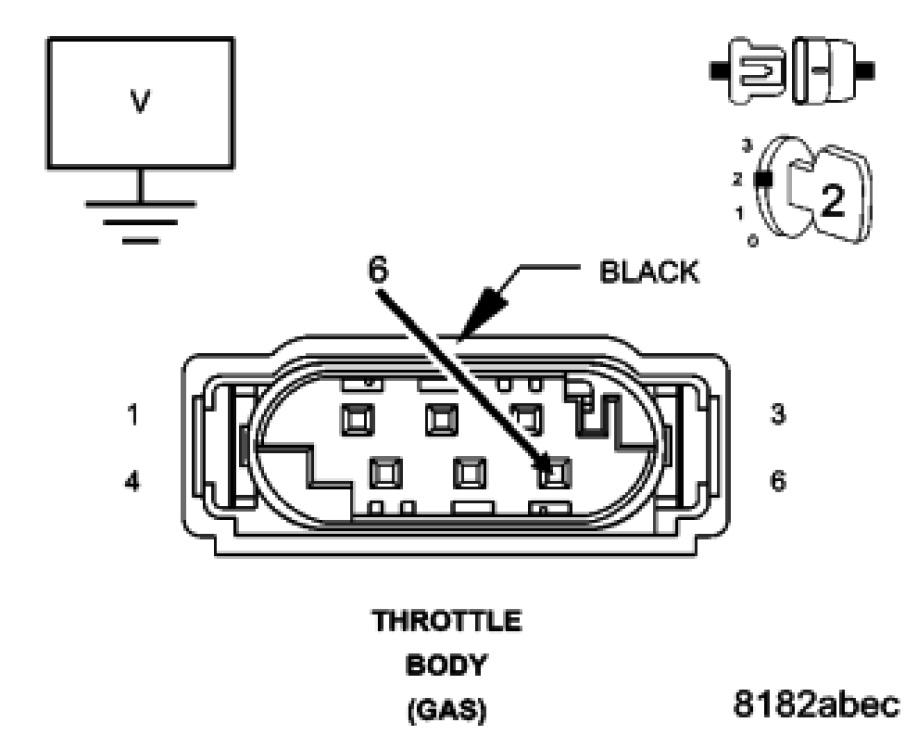 Using the wiring diagram/schematic as a guide, inspect the wiring and connectors between the Throttle Body and the Powertrain Control Module (PCM).
