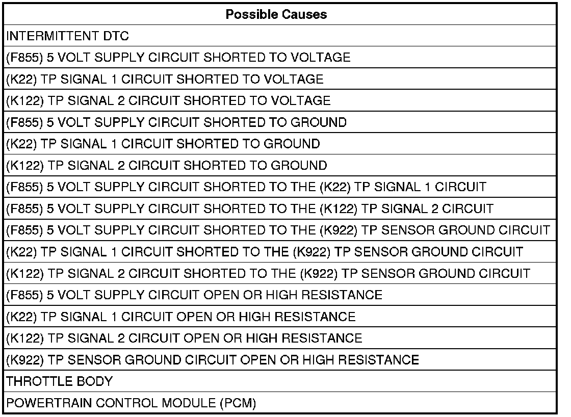 - Repair the (F855) 5 Volt Supply circuit for a short to the (K922) TP Sensor Ground circuit.