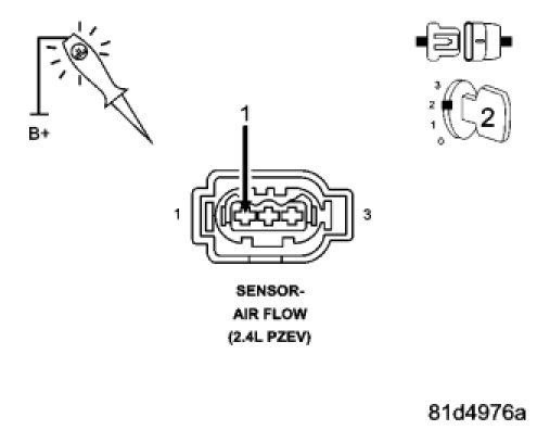 CAUTION: When checking circuits at the Powertrain Control Module (PCM), be careful not to damage or distort the connector terminals. Improper measurement technique could result in poor pin to terminal contact.