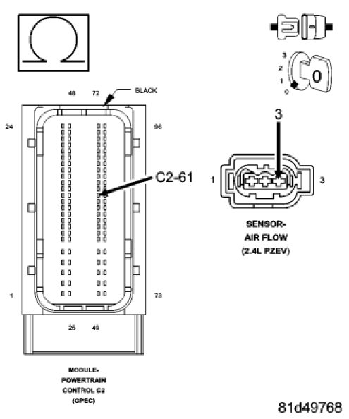 Using the wiring diagram/schematic as a guide, inspect the wiring and connectors between the Secondary Air Flow Sensor and the Powertrain Control Module (PCM).