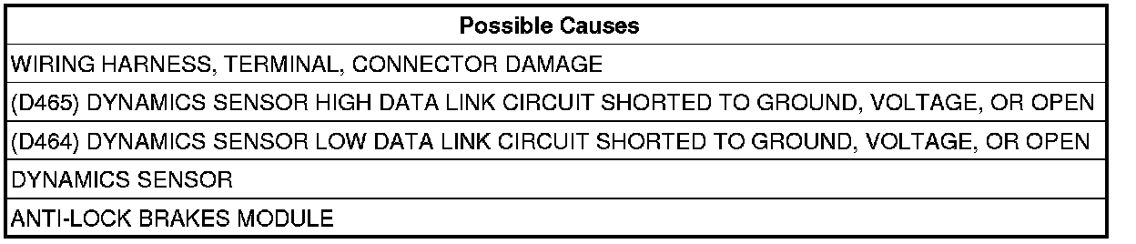 - Repair the (D465) Dynamics Sensor High Data Link circuit for an open.
