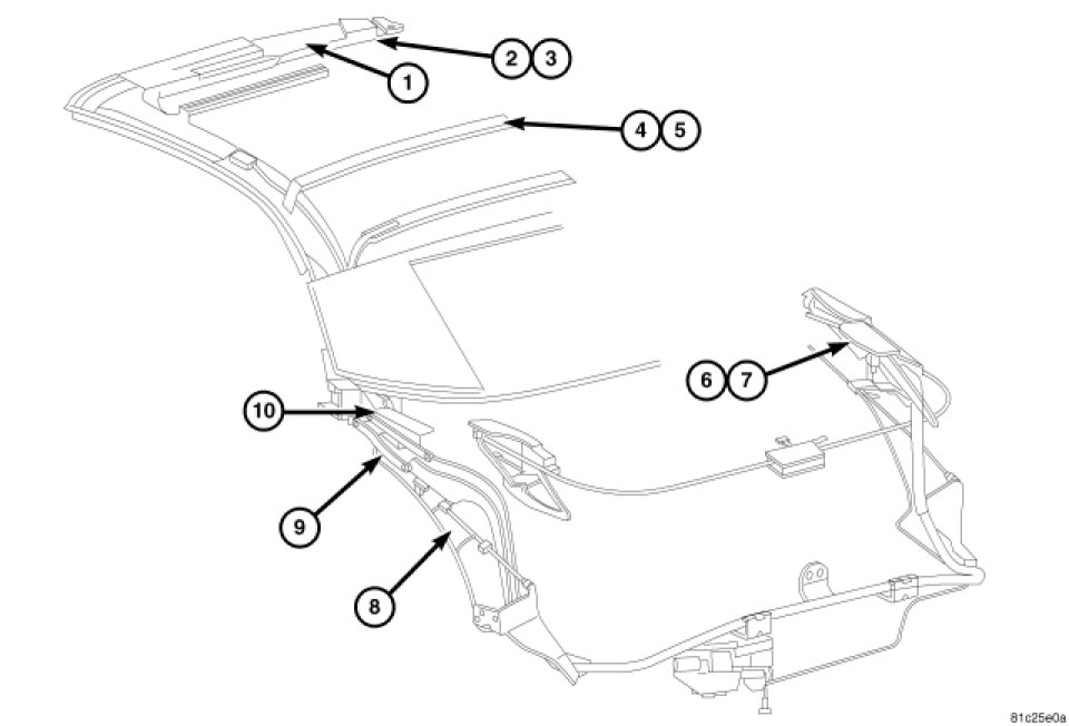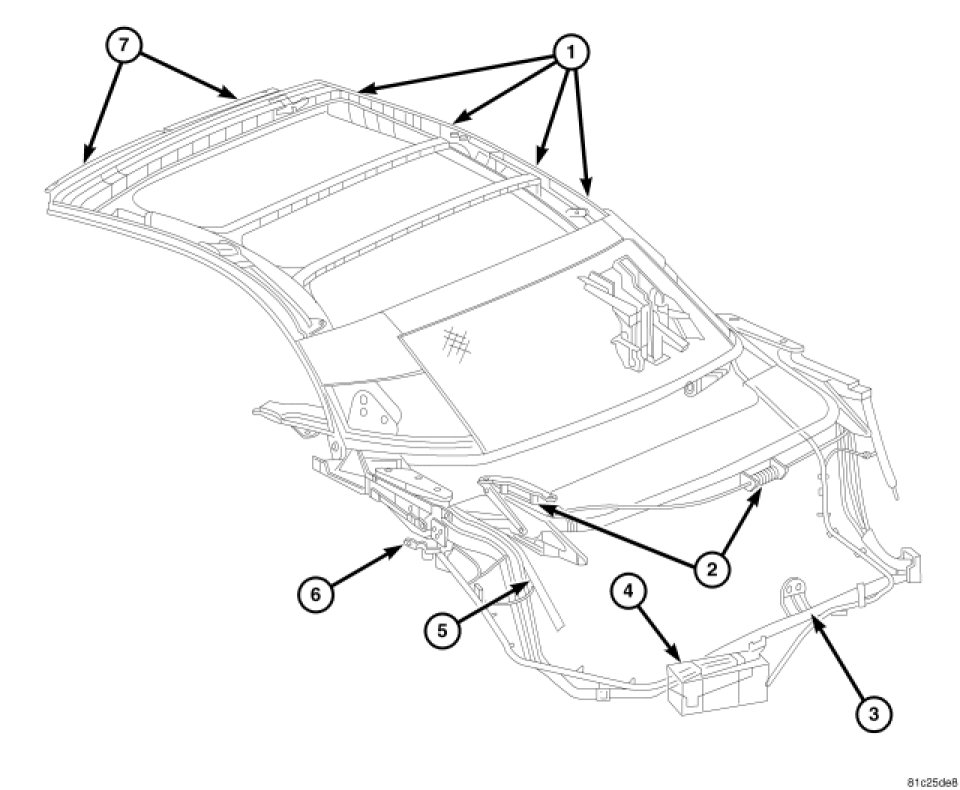 - The panel to panel unlatched switch (5) (retractable hard top only)